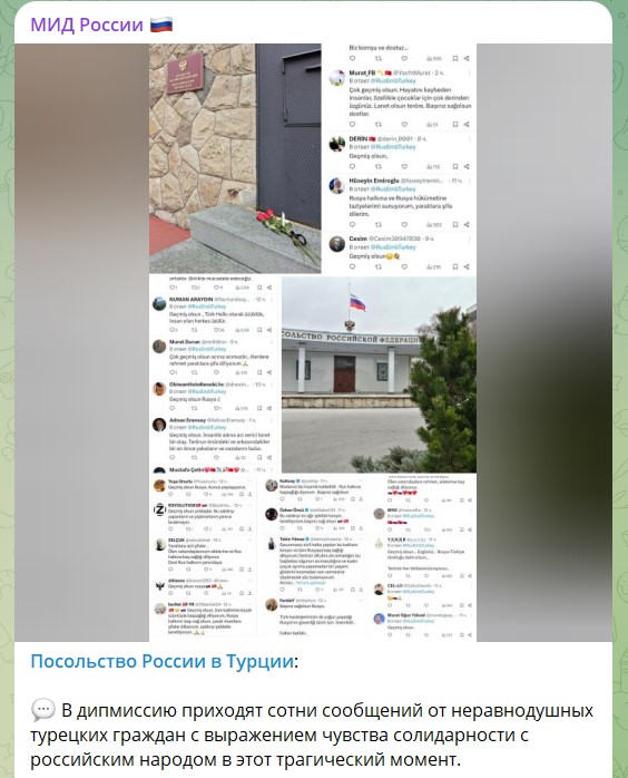 Скриншот: телеграм-канал посольства России в Турции