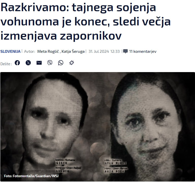 Источники Царьграда сообщают о передаче России Артёма и Анны Дульцевых, которых обвинили в шпионаже и приговорили к 1 году и 7 месяцам тюрьмы в Словении. В суде утверждалось, что русские выдавали себя за граждан Аргентины Людвига Гиша и Марию Розу Майер Мунос и передавали нашей стране "ценную информацию". Кого в ответ выдала Россия, пока неизвестно.