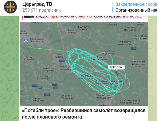 16:15. Экипаж разбившегося под Коломной самолёта Sukhoi Superjet 100, по информации Mash, уводил борт от населённых пунктов - деревень Апраксино и Малое Карасёво.