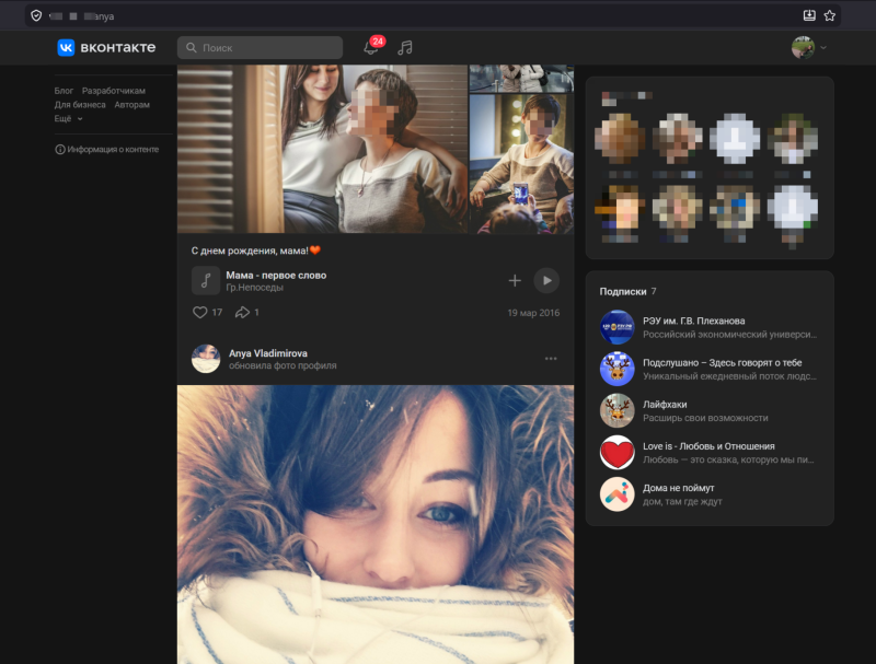 Скриншот с личной страницы Анны в соцсети.