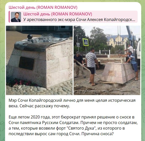 При этом чуть ранее - в 2020 году - Копайгородский отметился весьма громким скандалом. Политик снёс памятник крепости Святого Духа. Сделал это по требованию активистов из Турции, Иордании и Израиля. Те призывали срочно демонтировать памятник "русским оккупантам", мэрия тут же согласилась, даже не дождавшись соответствующего решения суда.