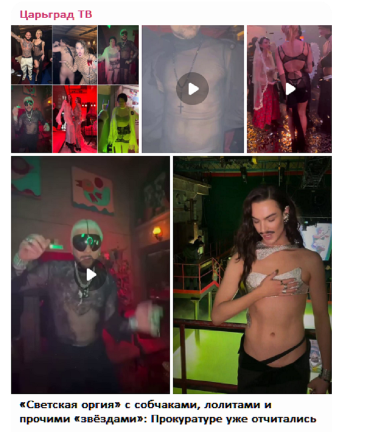 Поэтому, отвечая на вопрос Царьграда о том, насколько важно для актёров быть причастными к патриотической тематике, к военной тематике, Алексей Огурцов сказал: "Я первый позвонил Киркорову, когда он зашёл не в ту дверь". Речь идёт о скандальной голой вечеринке Насти Ивлеевой в ночном клубе в Москве, которая состоялась два года назад. После этого случая многим артистам, включая Лолиту, Киркорова и Диму Билана, пришлось извиняться перед нашим народом за это "зрелище".