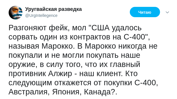 "Разгоняют фейк, мол, "США удалось сорвать один из контрактов на С-400", называя Марокко", - пишет автор публикации.