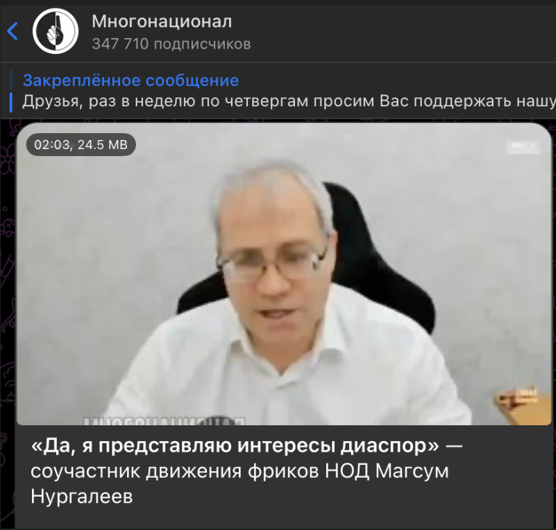 Вскоре из тени вышел коллега Федорова - соучастник Национально-освободительного движения (НОД) Магсум Нургалеев. Общественник дерзко отчитал русских. Деятель открыто выразил поддержку нелегальным иностранным специалистам, утверждая, что преступления, совершаемые мигрантами, являются ответной реакцией на рейды и задержания со стороны правоохранительных органов. Главный нарратив Нургалеева: посягнул на права мигрантов - получил отпор. Особенно удивительным стало утверждение, что мигранты не представляют опасности, поскольку совершают лишь 40 тысяч преступлений. Более того, опасения по поводу гостей из стран ближнего зарубежья преувеличены проамериканскими агентами, которые пытаются посеять раздрай между населением.