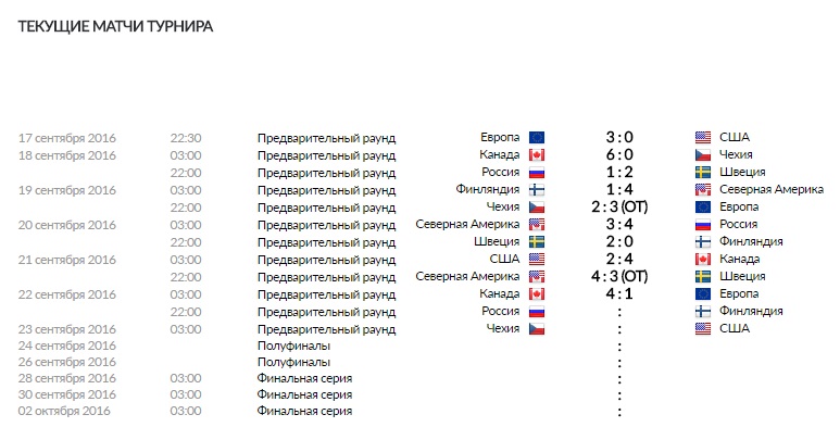 Сборная России проиграла дебютный матч сборной Швеции, уступая по ходу игры 0:2. Все изменилось на последней минуте - сперва Овечкин дальним броском от синей линии счет сократил, а за семь секунд до сирены забросил вторую шайбу. После видеопросмотра судьи отменили гол, зафиксировав игру рукой. Второй матч на турнире со сборной Северной Америки U23 команда Олега Знарка выиграла со счетом 4:3. Уступая в одну шайбу, сборная России за шесть минут второго периода забросила четыре - отличились Наместников, Кучеров, Кузнецов и Тарасенко. Шайба Владимира в итоге стала победной.