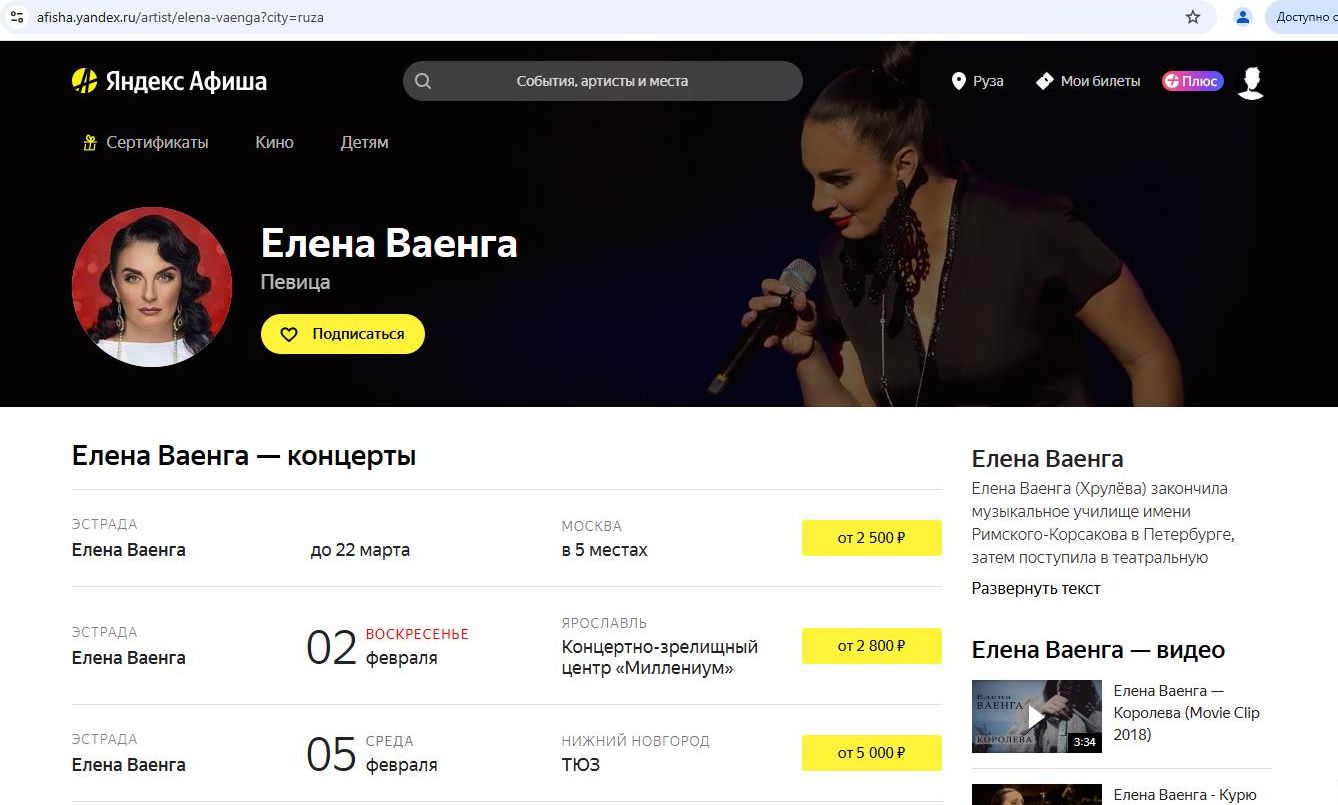 С концертами у Ваенги в 2025-м году проблем нет – а вот с появлениями на публике дефицит… Скриншот: интернет-сайт "Яндекс Афиша"