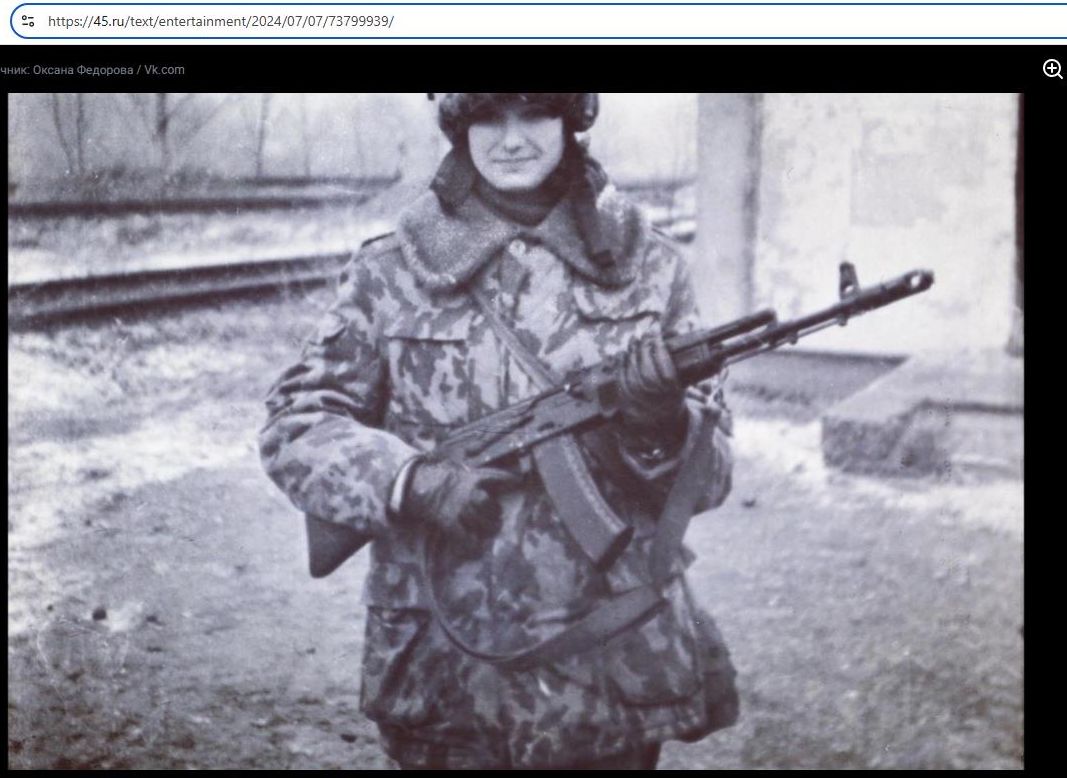 Красота – страшная сила. А если ещё и с автоматом… Оксана Фёдорова в юности. Скриншот: интернет-сайт https://45.ru/text/entertainment/2024/07/07/73799939/