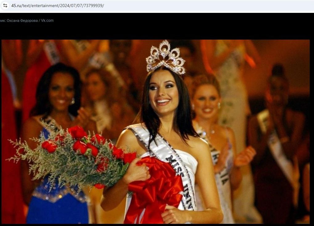 Фёдорова – победительница конкурса "Мисс Вселенная 2002". Скриншот: интернет-сайт https://45.ru/text/entertainment/2024/07/07/73799939/