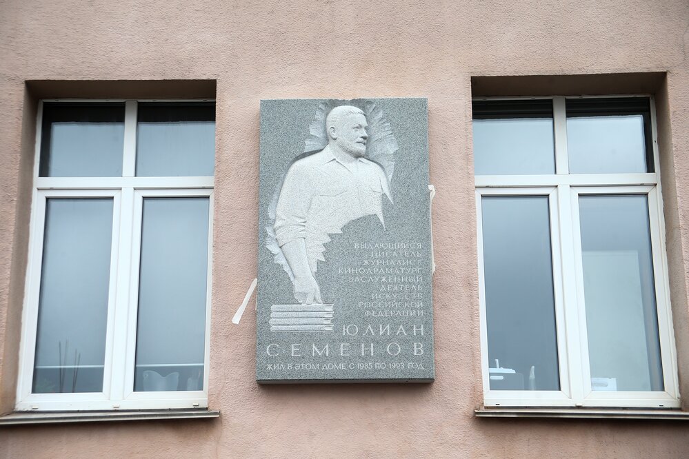 Мемориальная доска на доме Юлиана Семёнова в Москве. ФОТО: Ведяшкин Сергей/АГН "Москва"