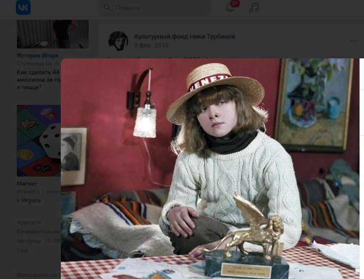 Ника Турбина в детстве. Скриншот: группа "Культурный фонд Ники Турбиной" в социальной сети "ВКонтакте"