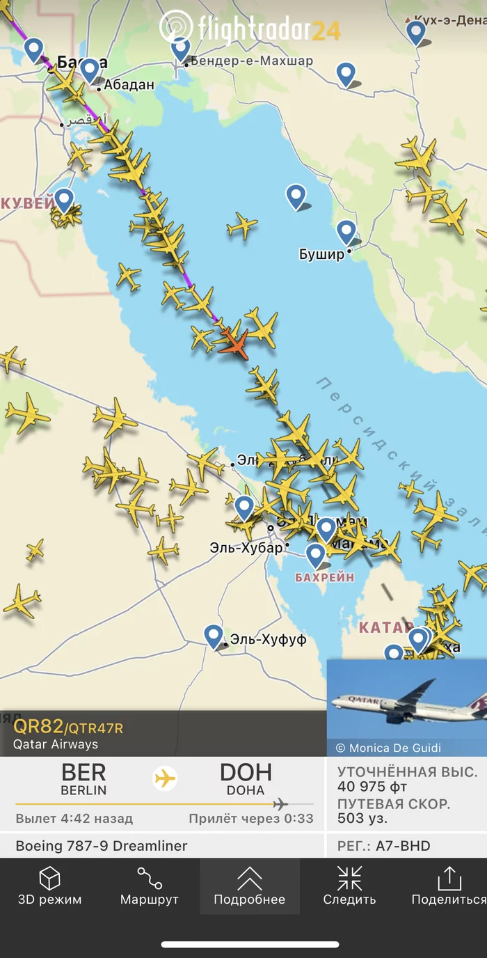 Куда все бегут? По неизвестной причине десятки самолётов устремились в Катар
