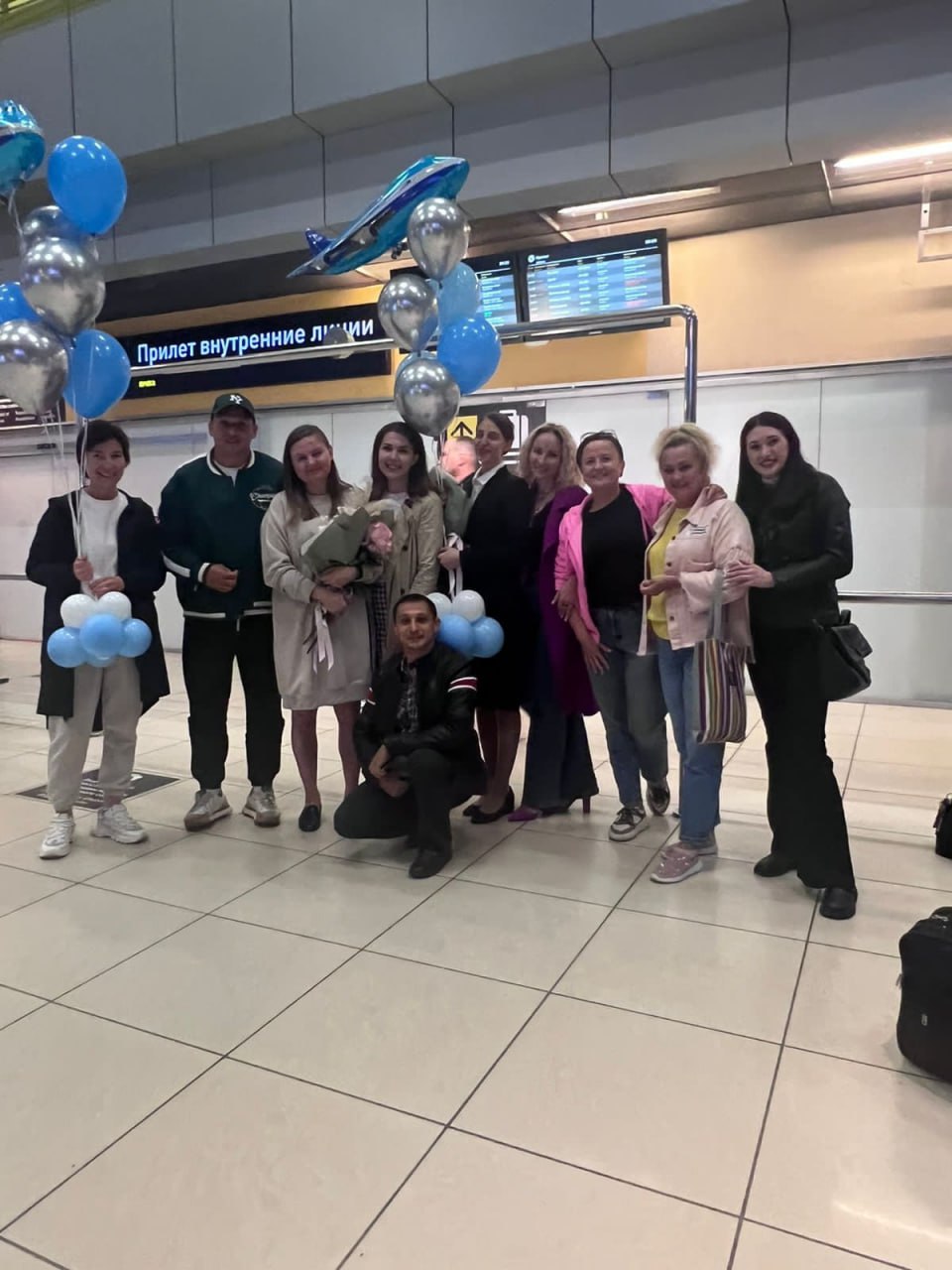 Встретить экипаж приехали коллеги из службы бортпроводников, а также Яна Ягодина и Дмитрий Ивлицкий, которые четыре года назад пережили посадку на кукурузное поле,
