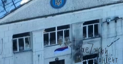 На кадрах, попавших в Сеть, видно, что русские бойцы забежали в здание, на котором висел украинский флаг и герб, а после водрузили русский триколор из окна второго этажа администрации.