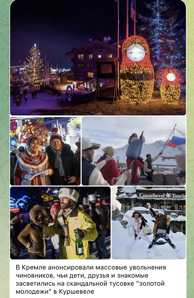 Январские вечеринки "золотой молодёжи" в Куршевеле неожиданно дошли до самого верха. По данным военкора Михаила Онуфриенко, в Кремле решили жестоко наказать родителей чересчур весёлых нуворишей и отправить их в отставку.