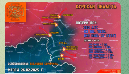 Всё больше хороших и долгожданных новостей приходит из Курской области. Накануне Минобороны подтвердило официально освобождение Погребков и Орловки. Сегодня утром Группировка войск "Север" в своём Telegram-канале "Северный ветер" заявила, что также удалось освободить деревню Новая Сорочина, расположенную южнее: