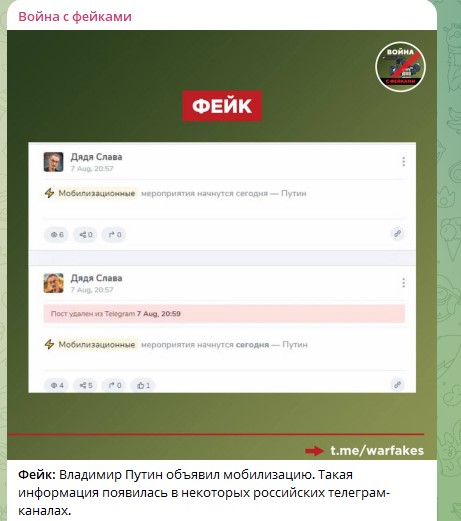 ФОТО: СКРИНШОТ TELEGRAM/ВОЙНА С ФЕЙКАМИ