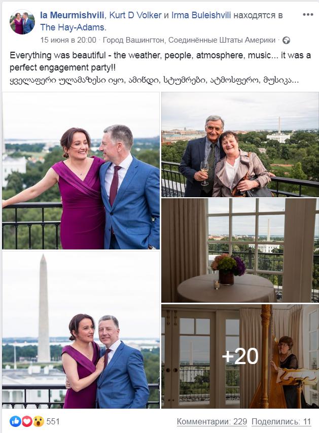 Спецпредставитель Госдепа США по Украине Курт Волкер отпраздновал помолвку с грузинской журналисткой "Голоса Америки" Ией Меурмишвили.