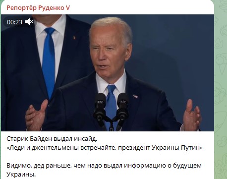 Старик Байден выдал инсайд. "Леди и джентельмены, встречайте, президент Украины Путин"