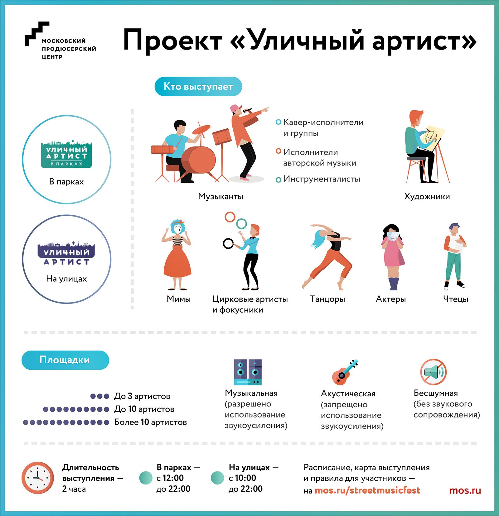 На протяжении трёх последних лет с наступлением первых тёплых дней победители проекта "Уличный артист в парках" получают возможность выступать на зелёных городских площадках. Зрителями становятся москвичи и гости столицы России. И 26 февраля Московский продюсерский центр, или, если коротко, Моспродюсер начинает принимать заявки от потенциальных участников этого большого летнего концерта.
