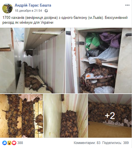 "По настоятельной просьбе хозяев должен был их оттуда забрать. Соответственно, во время сбора и посчитал... Поскольку сейчас во Львове тепло, летучие мыши были выпущены и отправились искать новые места для зимовки", - поведал Башта в Facebook.