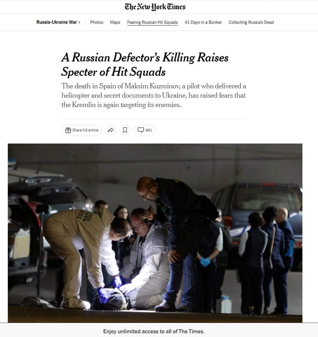 УБИЙСТВО РУССКОГО ПЕРЕБЕЖЧИКА НАВОДИТ НА МЫСЛЬ О ДИВЕРСИОННЫХ ГРУППАХ, ПИШЕТ NYT. ФОТО: СКРИНШОТ СТРАНИЦЫ САЙТА NYTIMES.COM