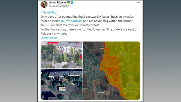 Русские катком идут на Покровском направлении. Скрин со страницы журналиста Юлиана Рёпке в социальной сети X