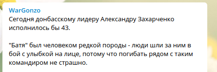 Так, военкор Семён Пегов, автор канала WarGonzo, у себя на странице в Сети напомнил, что Батя был человеком редкой породы".