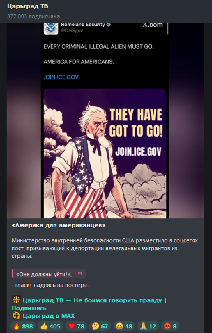Несмотря на то, что США наш враг, каким-то вещам у них стоило бы поучиться. В том числе такой скоординированной работе всех государственных ведомств по решению миграционных вопросов и выдворению сотен тысяч, миллионов нелегалов из страны,