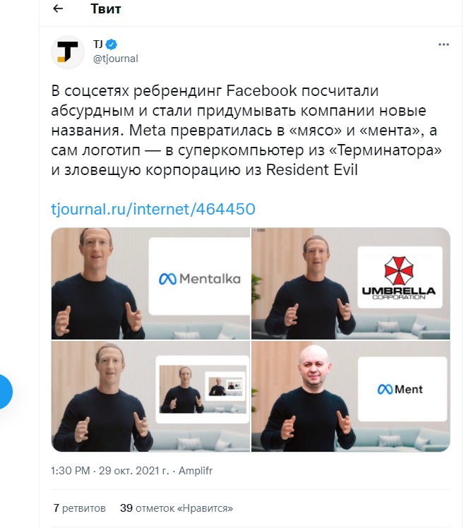 Twitter взорвался ироничными комментариями на изменение названия компании Facebook. Русские пользователи упражняются в остроумии, реакции поступают даже от футбольных клубов второго дивизиона. Однако всё сводится к тому, что от перемены мест слагаемых сумма не меняется.