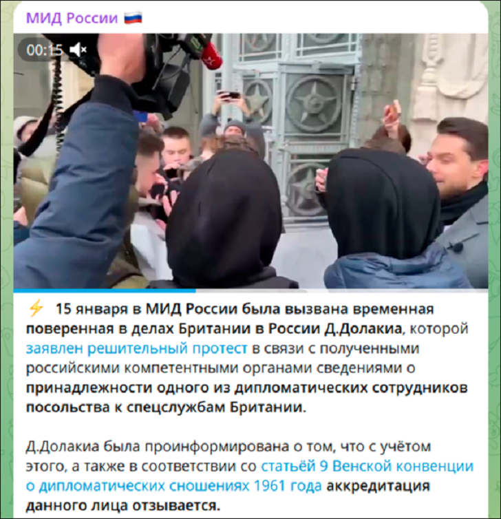 Скриншот поста из ТГ-канала "МИД России"