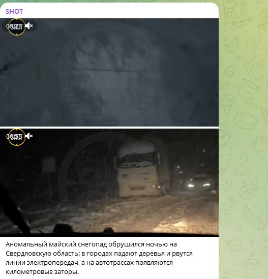 Аномальный майский снегопад обрушился ночью на Свердловскую область. По данным очевидцев, в некоторых городах региона падают деревья и рвутся линии электропередач, а на автотрассах появляются километровые заторы.