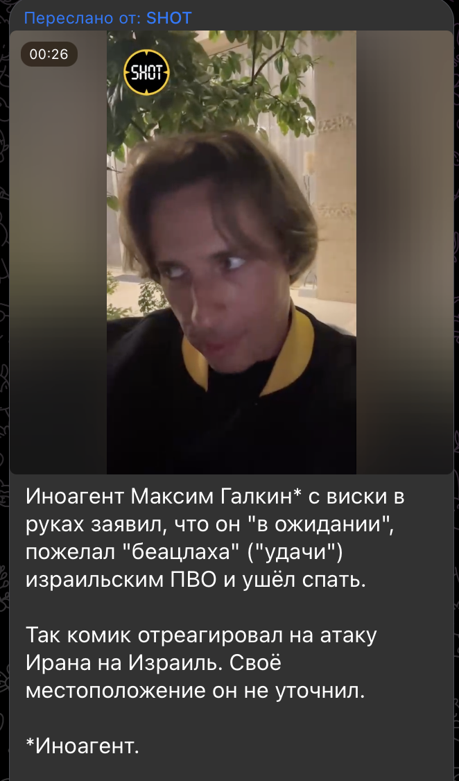 Ранее артист, как он сам признался, несколько перебрав со спиртным, вновь отчитал русских журналистов, призвав всех успокоиться. Реакция на удар Израиля в случае с Галкиным* получилась несколько нервной. На своей странице в Instagram** Максим Галкин* устроил настоящий фейерверк недопонимания, начав с приветствия атаки Ирана на Израиль на иврите. Потом, когда опомнился, быстренько убрал запись и снял новое видео, где уже пожелал удачи израильским ПВО. Однако, как становится ясно теперь, дискуссия только-только разворачивалась.