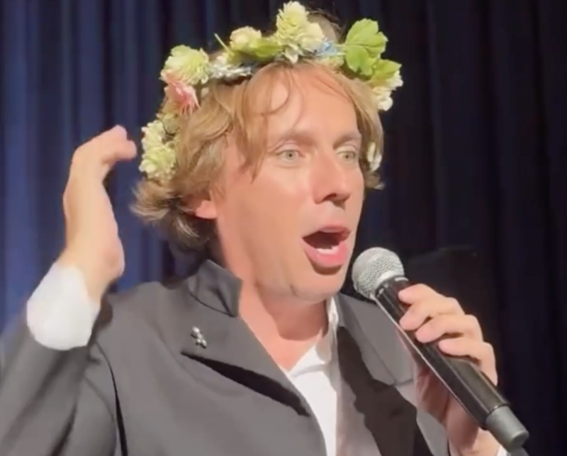 Пока Алла Пугачёва таится на Кипре, её муж-иноагент вынужден колесить по Европе, зарабатывая деньги на содержание семейства. Максим Галкин* дал очередной концерт, где кроме привычных русофобских шуточек неожиданно надел венок из цветов и запел по-украински. К слову, и песня оказалась "особой".