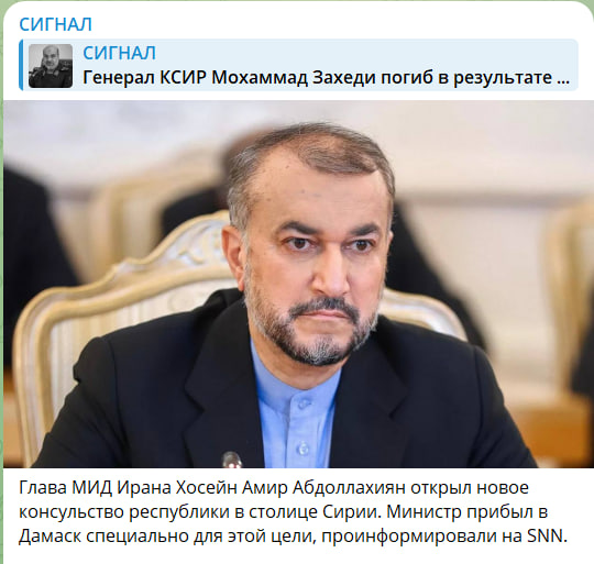 Министр иностранных дел Ирана Хосейн Амир-Абдоллахян заявил своему немецкому коллеге в четверг, что Иран полон решимости отреагировать на бомбардировку Израилем здания его консульства в Дамаске на прошлой неделе, но сделает это "адекватным" и ограниченным образом, сообщил источник, имеющий непосредственные знания о ситуации в Иране,