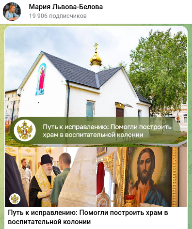 "Помогать в этом важном деле решила во время общения с осуждёнными подростками. Меня глубоко тронули их рассказы и история местного батюшки - иерея Михаила Ожиганова, который взял под опеку троих воспитанников, - отметила Мария Львова-Белова. - Человеческая и духовная поддержка особенно важна для ребят, оступившихся в жизни. Теперь у них есть место для молитвы и участия в богослужениях".