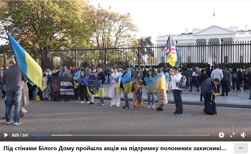 На кадрах видно, как участники марша стоят перед Белым домом с украинскими и американскими флагами, а также с символикой СС и нацбатальона "Азов"**. При этом правоохранительные органы никак на это не реагируют.