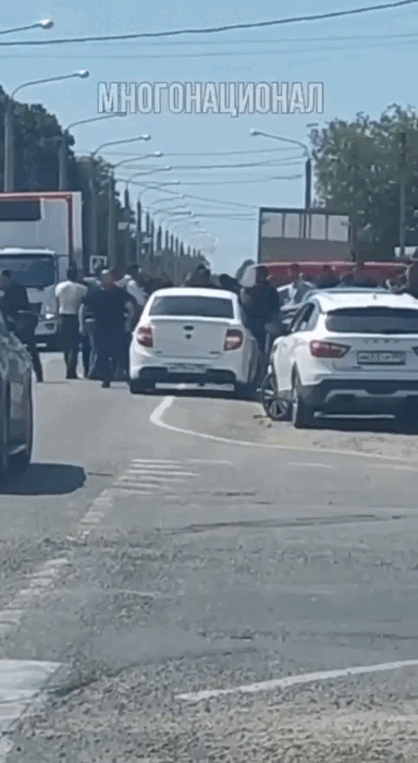 Стычка произошла у магазина. По роликах очевидцев можно понять, что пара десятков человек нападает на нескольких, которые уже лежат на асфальте.