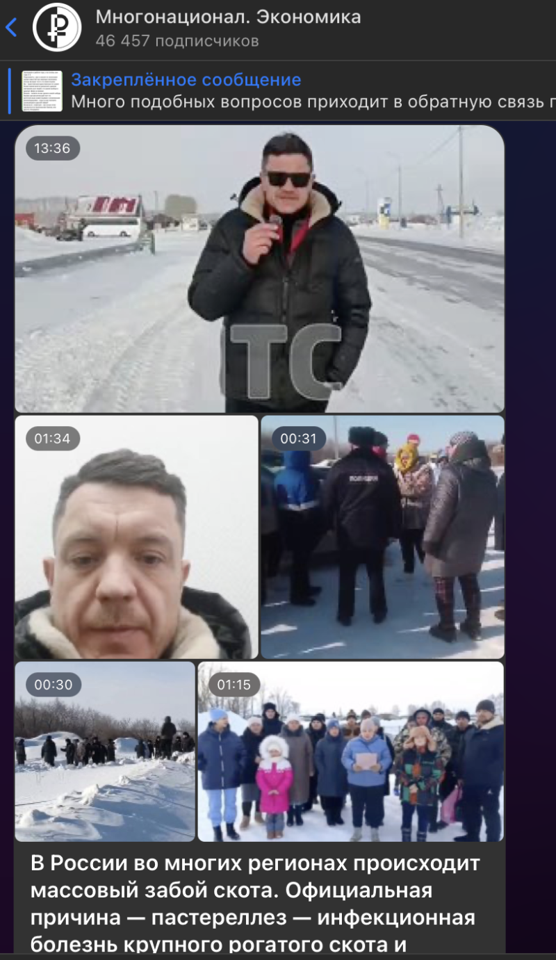 В России бушует кризис в животноводстве: массовый забой скота охватывает 11 регионов от Якутии до Пензенской области. Официально всё списывают на пастереллез - острую инфекцию, поражающую коров и свиней. Но за кулисами фермеры и эксперты шепчутся о возможных "подставах": язве или даже сибирской язве, пишет "Многонационал".