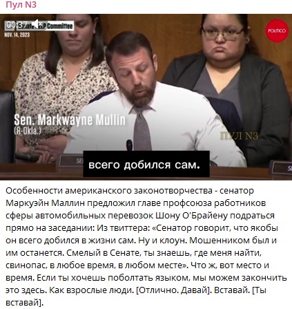 Сенатор Маркуэйн Маллин преподал собственный мастер-класс законотворчества по-американски прямо во время заседания. "Ты знаешь, где найти меня, свинопас", - после этих слов он предложил разобраться "по-взрослому".