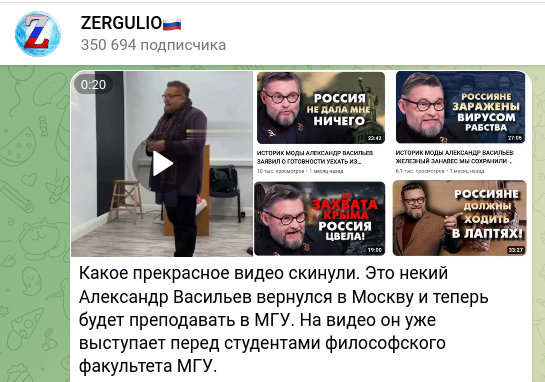 Ныне бывший ведущий программы "Модный приговор" на Первом, сразу после начала СВО принявшийся делать истеричные публичные заявления в духе "Россия плохая, а я хороший", пытался по традиции отечественных либералов усидеть на двух стульях. То есть в соцсетях и интервью он оскорблял русский народ, но деньги хотел зарабатывать именно на Родине (больше негде).