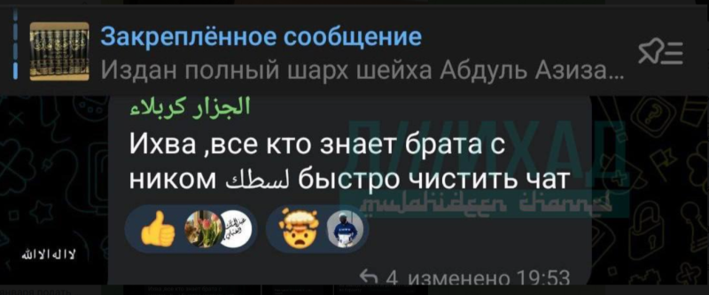 19-летний точик, который зарезал 18-летнего парня в ходе конфликта в Подмосковье, скорее всего не так прост, как кажется. В комментариях к одному из салафитских каналов просят почистить переписку с неким пользователем, который "одного русского зарезал в конфликте его поймали". Там же пишут, что он вёл канал "блог чуждого". "Чуждыми" или "гураба" называют себя сторонники "чистого Ислама" и различных организаций с чёрными флагами в качестве символики.