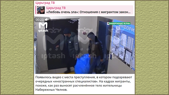 МИГРАНТЫ-УБИЙЦЫ ВЫНЕСЛИ РАСЧЛЕНЁННОЕ ТЕЛО СВОЕЙ ЖЕРТВЫ У ВСЕХ НА ГЛАЗАХ. СКРИНШОТ ПУБЛИКАЦИИ В ТГ-КАНАЛЕ "ЦАРЬГРАД"