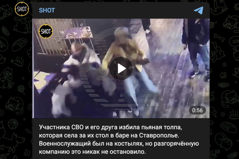В баре "Текила", который находится в Невинномысске Ставропольского края, произошёл конфликт между участником СВО по имени Алексей и мигрантами. Ситуация, которая могла бы быть разрешена мирно, переросла в серьёзную драку. В злосчастный день Алексей отдыхал в баре со своим другом.