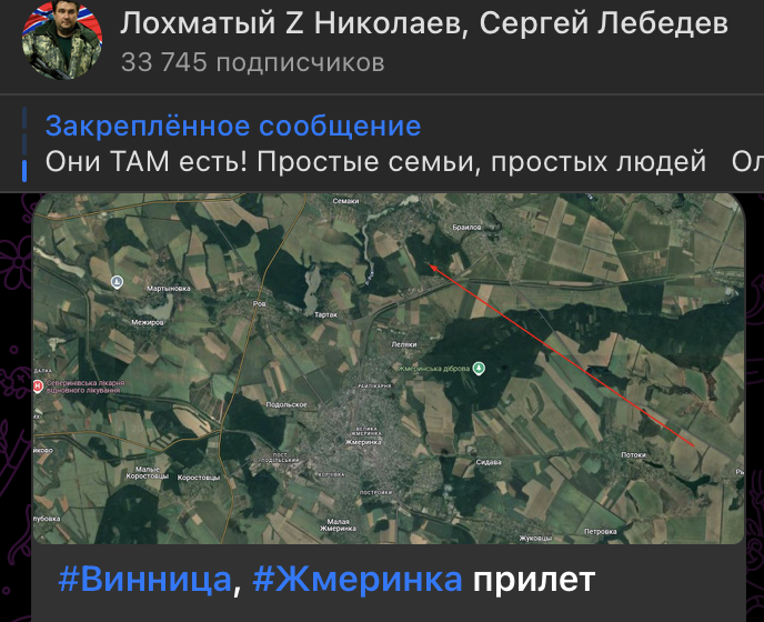 Согласно сообщению Сергея Лебедева, координатора прорусского сопротивления в Николаеве, Россия нанесла удар по бывшей ракетной базе, расположенной в районе Жмеринки Винницкой области Украины. Он отметил, что эта база, находящаяся в Браиловском лесу, не выглядит заброшенной, поскольку там установлены блокпосты и введены ограничения на проезд. Лебедев добавил, что в этом направлении наблюдалось движение легковых и грузовых автомобилей с военными номерами.