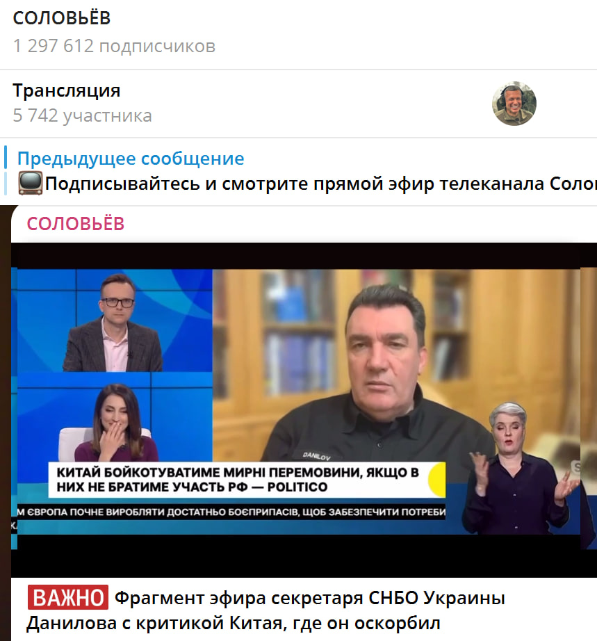 Всего неделю назад Алексей Данилов матерно коверкал в прямом эфире фамилию китайского представителя. В КНР на это отреагировали нейтрально, указав, что не в курсе столь одиозных заявлений. Однако вскоре стало известно, что Данилову прилетела "ответка".
