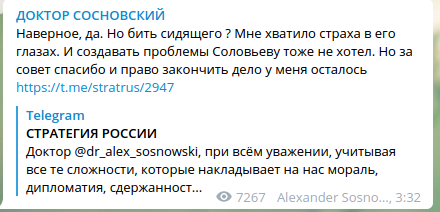 Фото: скриншот Telegram-канала "ДОКТОР СОСНОВСКИЙ".