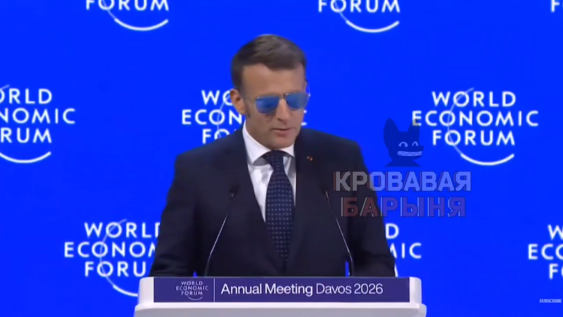 Макрон выступил на Всемирном экономическом форуме в Давосе и тут же привлёк к себе внимание. Политик был одет в свой обычный деловой костюм, но при этом щеголял в больших солнцезащитных очках-авиаторах, которые надёжно скрывают глаза.