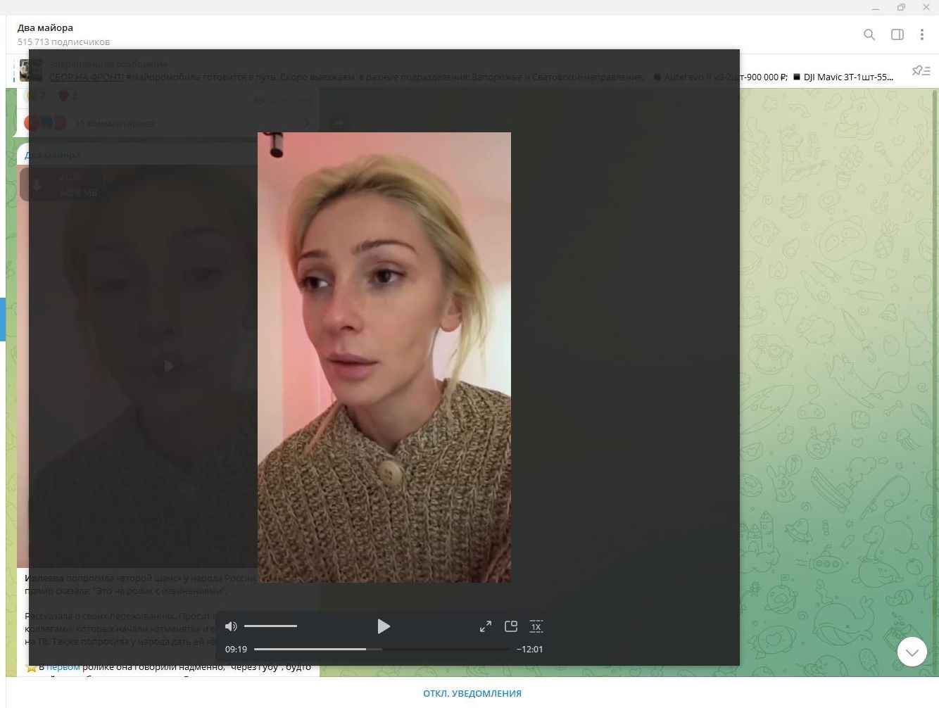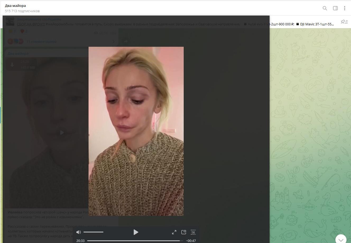 Ивлеева начинает 20-минутные извинения. Скриншот: телеграм-канал "Два майора"