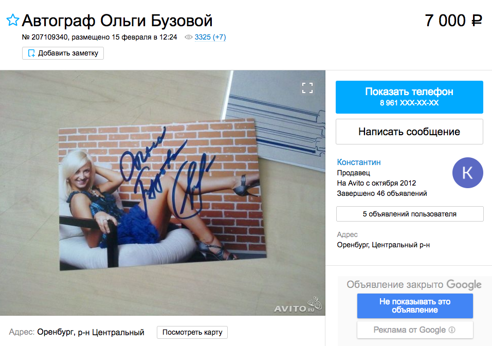 На популярных порталах объявлений недавно массово появились в продаже автографы известной шоу-дивы и певицы Ольги Бузовой.