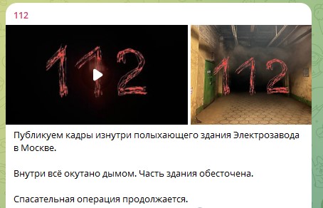 20:49 Пожар в здании бывшего Электрозавода в Москве удалось локализовать на площади около 1000 "квадратов" – источник 112.